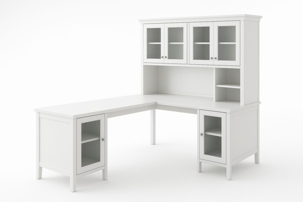 Scrivania ad Angolo in MDF Bianco con Ante in Vetro Temperato