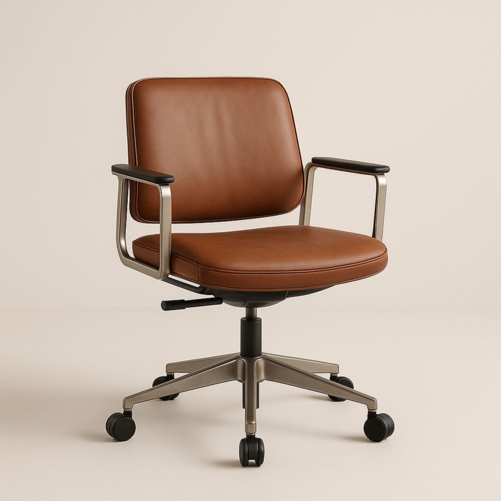 Sedia da Ufficio in Pelle Sintetica Marrone con Base in Metallo Regolabile
