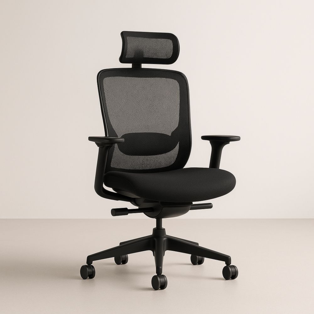 Sedia ergonomica da ufficio in rete nera con poggiatesta regolabile