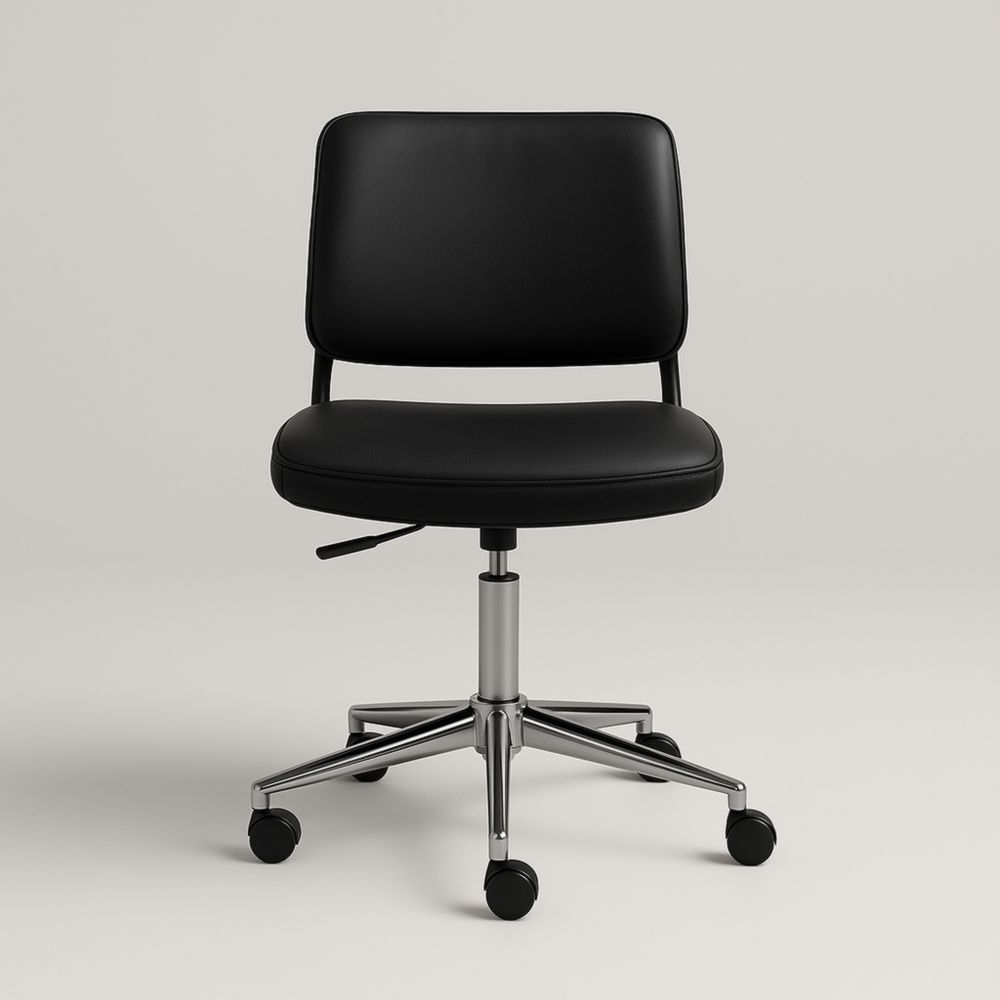 Materiale: Ecopelle (seduta e schienale), acciaio inox (base e struttura)
