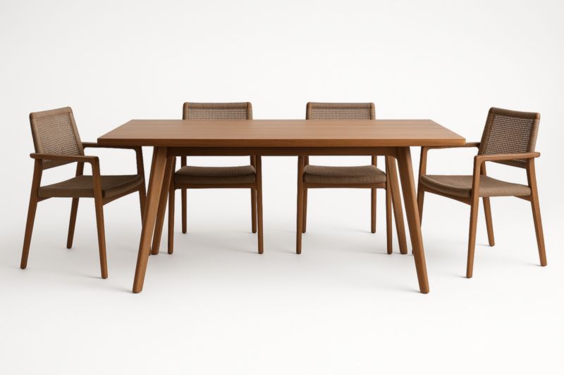 - Materiale: legno massello per il tavolo e struttura delle sedie, seduta e schienale delle sedie in rattan